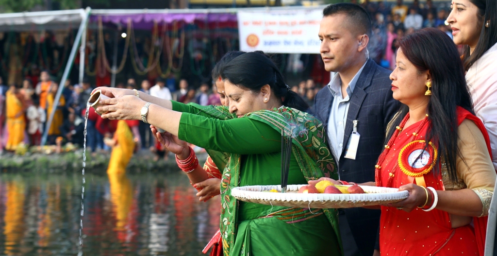 राष्ट्रपति भण्डारीबाट छठी माताको आराधना