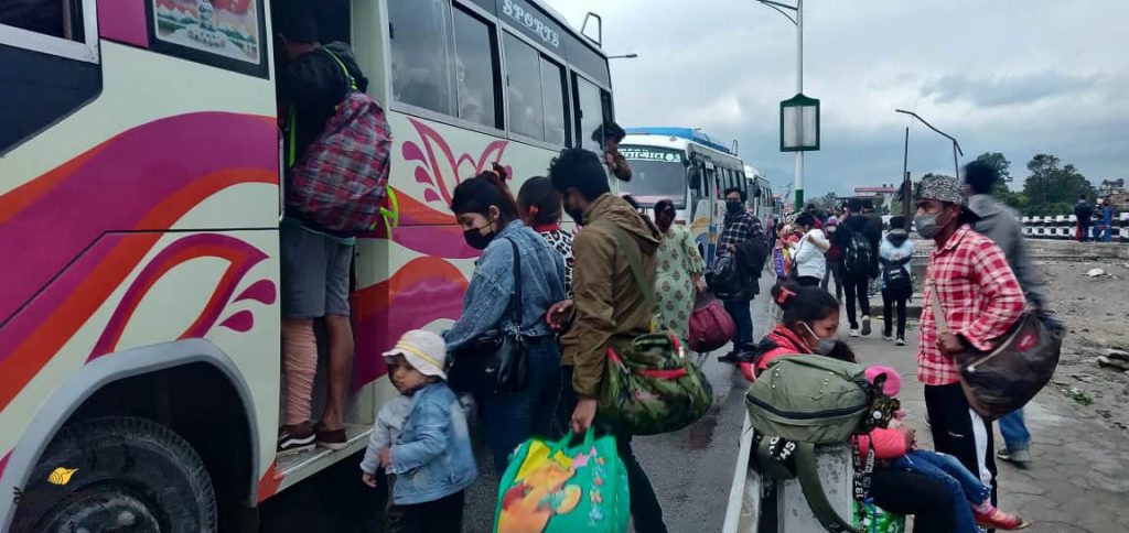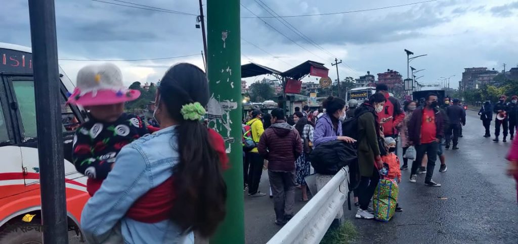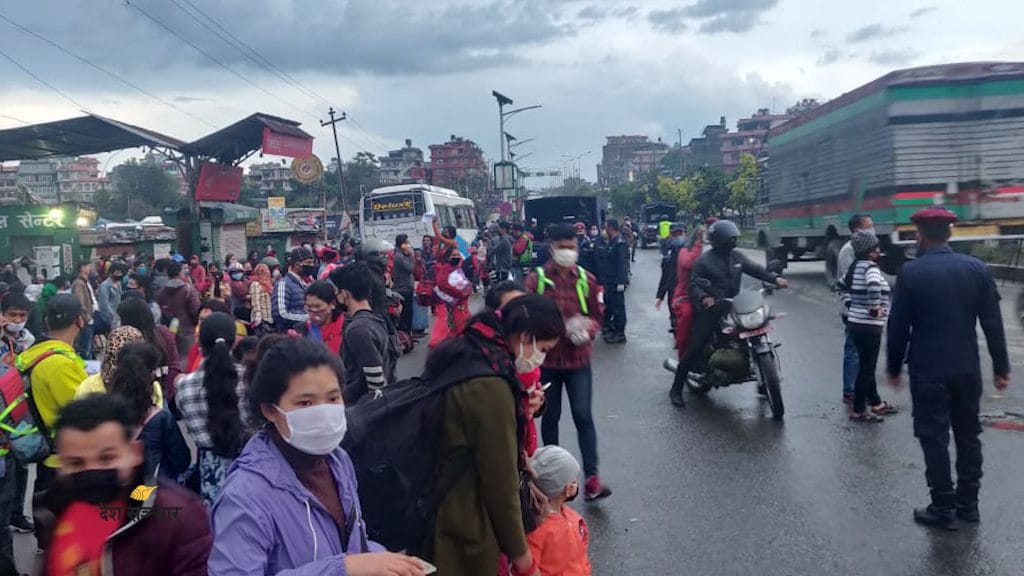 बालबच्चा र पोकापुन्तुरा बोकेर हजारौँ मानिसको भिड साँझ जडिबुटी-लोकन्थली सडक खन्डको किनारमा उभिइरहेको थियो। उनीहरुमध्ये अधिकांशले कोरोना भाइरसको संक्रमणबाट जोगिन सामान्य सावधानीसमेत अपनाएको देखिएन। भक्तपुर प्रहरी प्रमुख सबिन प्रधान रात पर्न लाग्दा यात्रुलाई गाडी चढाउन आफैँ खटिइरहेका थिए। सडक किनारमा उभिरहेकासँग बुझ्दा उनीहरु गाउँका जनप्रतिनिधिले बोलाएर आफूहरु यहाँ आइपुगेको बताइरहेका थिए।