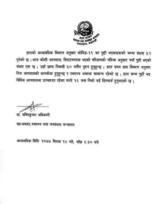 झापामा थपिए कोरोनाका एक बिरामी, संक्रमितको संख्या ५२ पुग्यो