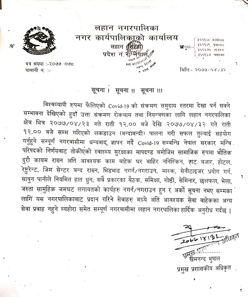लहान नगरपालिकामा आजदेखि हट्यो लकडाउन ! (सूचनासहित)