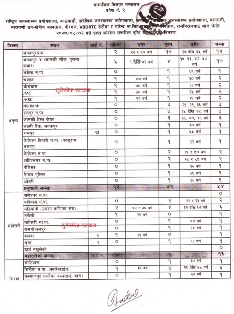 धनुषामा ५४ जनासहित प्रदेश २ मा ३२४ कोरोना संक्रमित थपिए (हेर्नुस् पुरा डिटेल)
