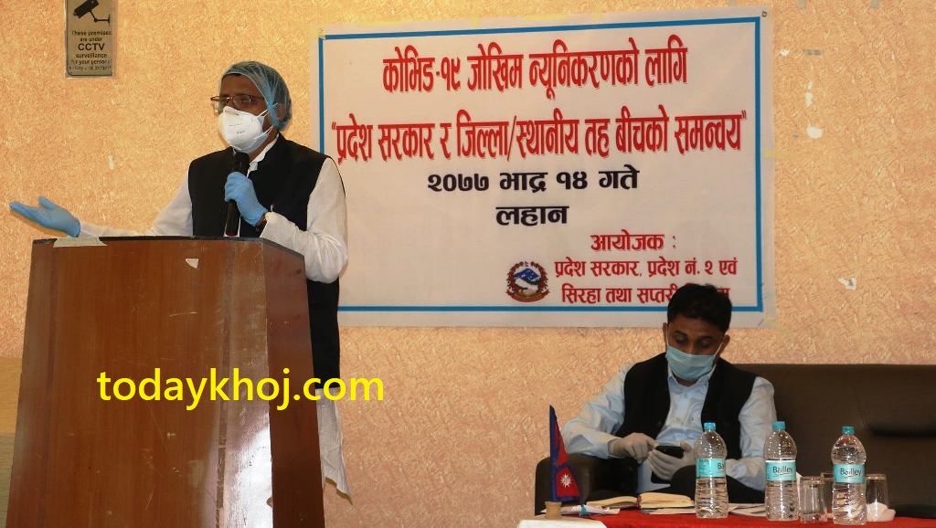 महामारी नियन्त्रणको लागि आवश्यक सल्लाह सुझाव लिन सिरहाको लहानमा आयोजित सिरहा र सप्तरीका सरोकारबालाहरुसंगको छलफलमा मुख्यमन्त्री राउतले यस्तो निर्देशन दिएका हुन् । उनले भने, ‘महामारी नियन्त्रणका लागि प्रदेश सरकारले सबै जिल्लालाई स्वास्थ्य सामग्री सहितका आवश्यक रकम समेत पठाई सकेको छ, अगामी दिनमा समेत कुनै कमी हुन दिने छैन ।’