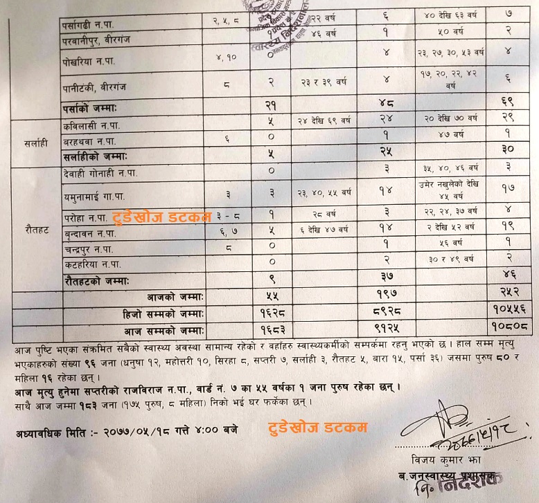प्रदेश २ : बिहीबार एकैदिन २५२ जनामा कोरोना पुष्टि (हेर्नुस् पुरा डिटेल)