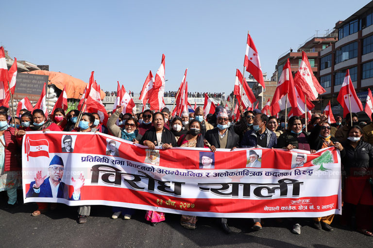 प्रतिनिधिसभा विघटनविरुद्ध कांग्रेसको देशभर प्रदर्शन