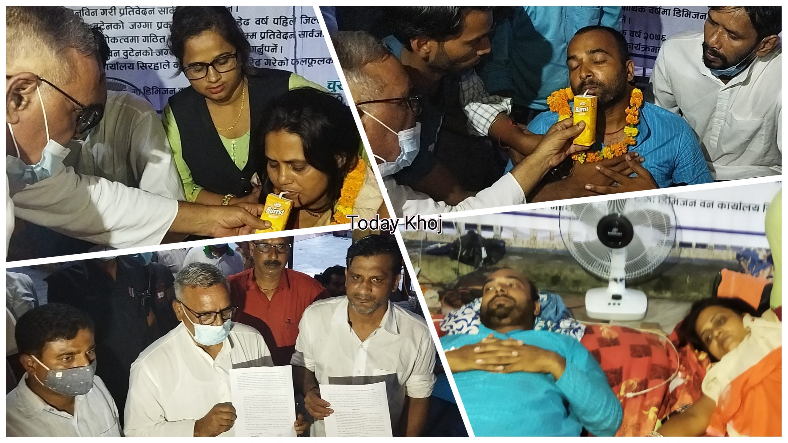 टुडेखोज, जनकपुरधाम : प्रदेश सरकारले माग सम्बोधन गर्ने आश्वासन दिएपछि चुरे अभियानीद्वय रानी राय र अमन यादव आमरण अनसन तोडेका छन् ।