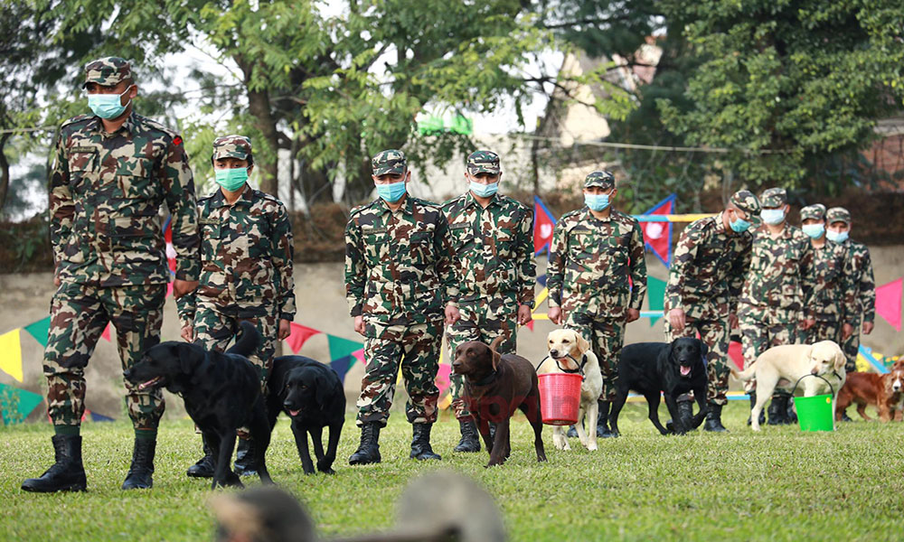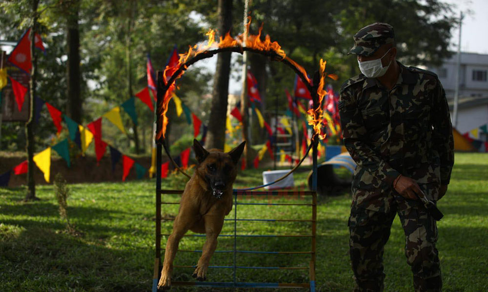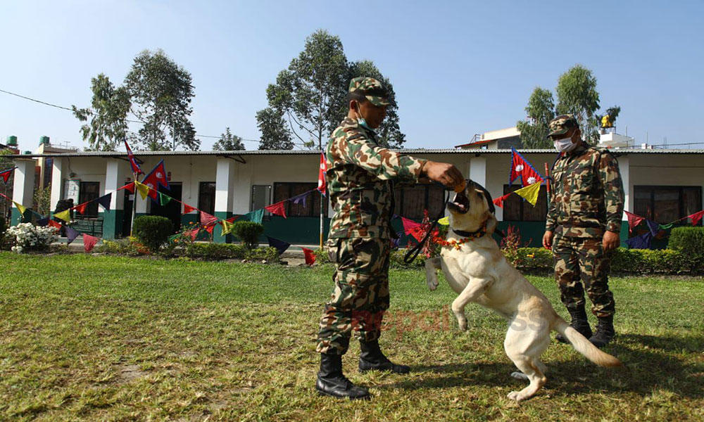 यसै अवसर पारेर भैरव बहान गुल्मले १८ वर्षदेखि शान्ति मिसनमा सहभागी गराउँदै आएको सैनिक डगको पूजा गरेको छ । नेपाली सेनाले भैरव बहान गुल्ममा सैनिक कुकुर तथा कला प्रदर्शनी गरेको हो । बिहान नेपाली सेनाले सैनिक कुकुर तथा कला प्रदर्शनी तथा कुकुर पूजा कार्यक्रम राखेको थियो ।