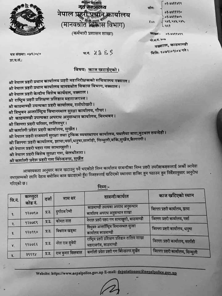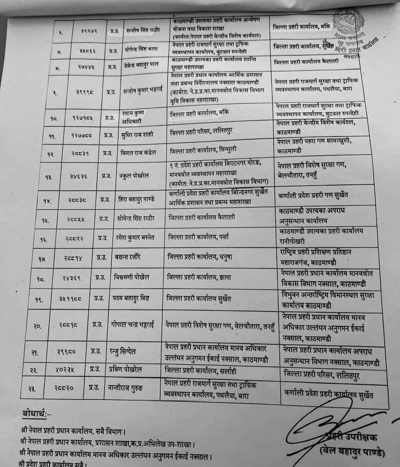 नेपाल प्रहरीका २३ जना एसपीहरुको काज सरुवा, को कहाँ पुगे ? (सूचीसहित)