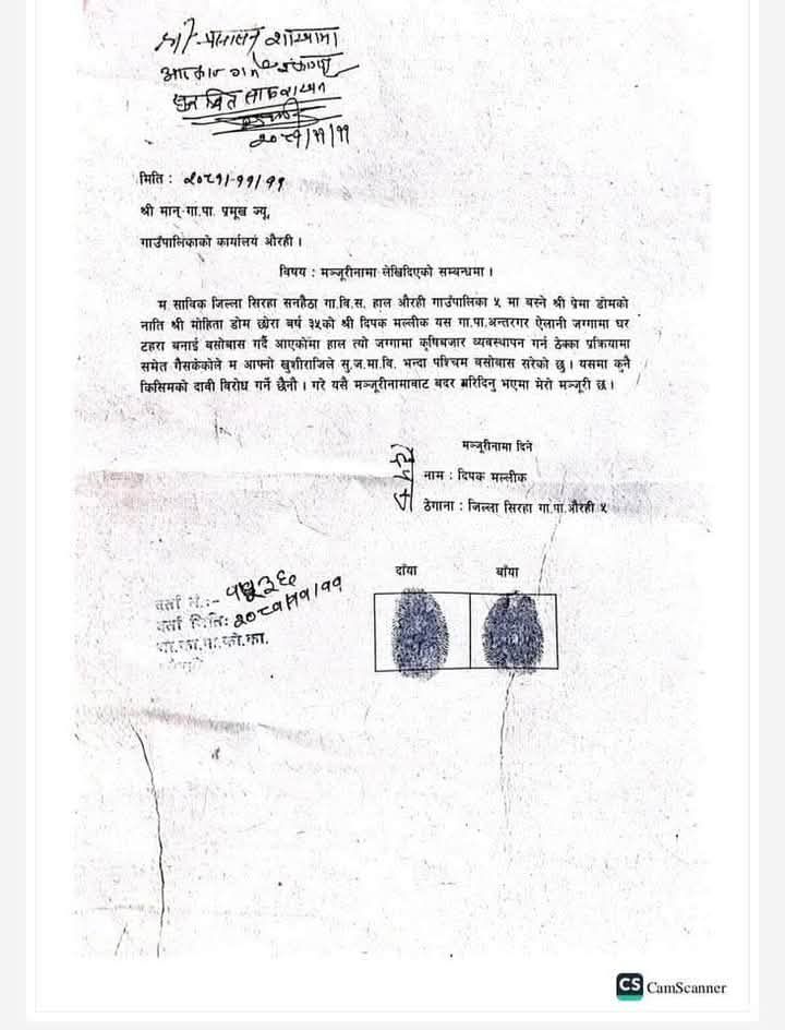 सामाजिक सञ्जालमा आज पीडित दिपकले आफूखुसी बसोबास सारेको मन्जूरीनामा लेखिदिएको कागज सार्वजनिक भएको छ । उक्त कागज पनि दबाब दिएर ब्याक मितिमा गर्न लगाएको स्रोतको दावी छ । यसको छानविन हुनुपर्ने दलित अभियन्ताहरुले माग गरेका छन् ।