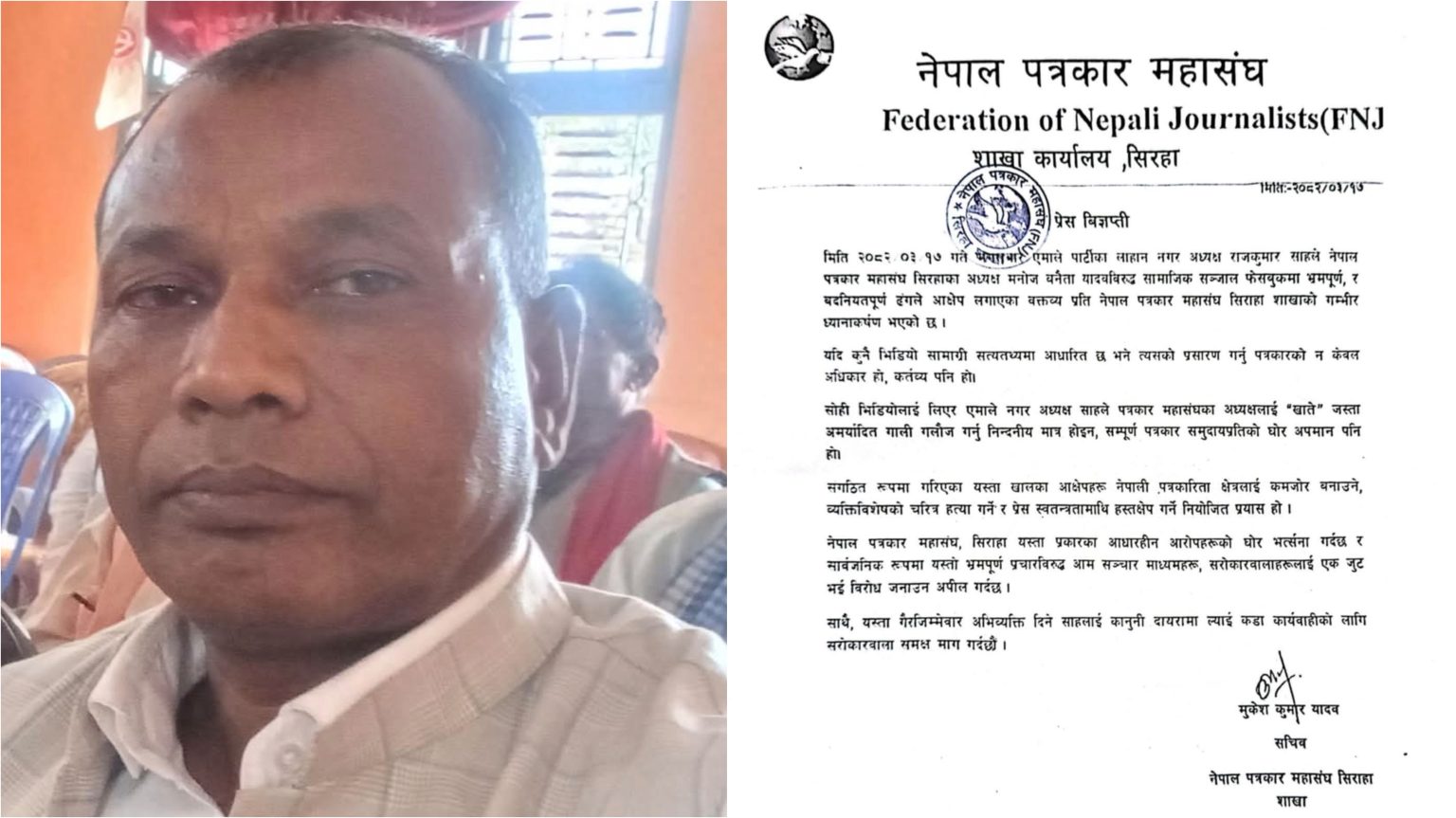 एमाले लहानका नगर अध्यक्ष साह बने उदण्ड ! कारबाही गर्न पत्रकार महासंघ सिरहाको माग